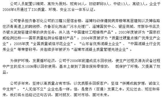 淄博意齊(百通)混凝土有限公司公司簡介,關(guān)于淄博意齊(百通)混凝土有限公司