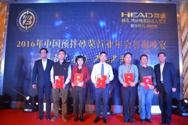 11月10日晚,由山東赫達(dá)股份有限公司承辦的“2016中國預(yù)拌砂漿行業(yè)年會(huì)答謝晚宴——赫達(dá)有約 不見不散”在科技感十足的《時(shí)空之夢》舞蹈下正式拉開帷幕。分會(huì)理事長王肇嘉、山東赫達(dá)股份有限公司研發(fā)總監(jiān)李玉海分別代表主辦方和承辦方致辭。隨后,伴隨著悠揚(yáng)的樂曲及精彩熱烈的抽獎(jiǎng),中國預(yù)拌砂漿行業(yè)各領(lǐng)域精英再度聚首,共同為預(yù)拌砂漿事業(yè)舉杯歡慶,祝愿共同愿砂漿大業(yè)永遠(yuǎn)興旺蓬勃。晚宴同時(shí)還為2016年度中國預(yù)拌砂漿行業(yè)評比表彰中獲得優(yōu)秀通訊員的個(gè)人進(jìn)行了頒獎(jiǎng),并為預(yù)拌砂漿分會(huì)新任專家頒發(fā)了聘書。