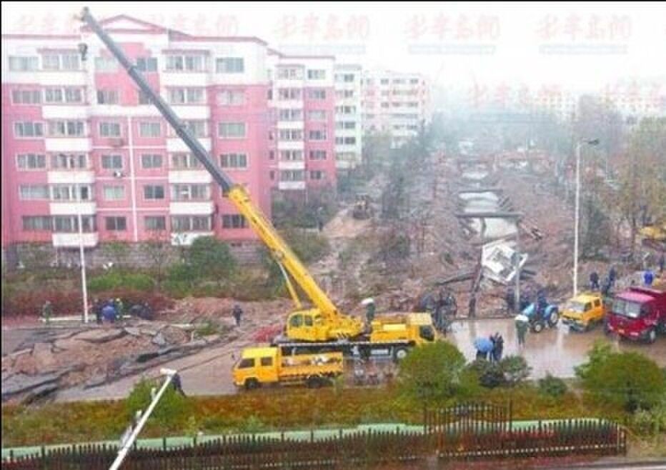 事故發(fā)生后,青島人民積極組織重建,此刻的黃島街道,銀行、飯店、商場、店鋪正常營業(yè),市政搶修緊張進行,現(xiàn)場清理進展很快,崇明島路行人可通過。