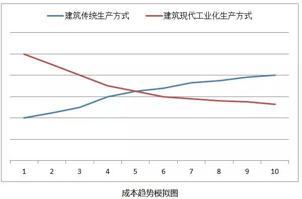 傳統(tǒng)生產(chǎn)方式的成本上升與工業(yè)現(xiàn)代化生產(chǎn)方式的成本下降,這是不可扭轉(zhuǎn)的發(fā)展趨勢!兩者終將在某個時間點相遇,當(dāng)工業(yè)現(xiàn)代化生產(chǎn)方式下的成本低于傳統(tǒng)生產(chǎn)方式時,也是建筑工業(yè)現(xiàn)代化生產(chǎn)方式大面積取代建筑傳統(tǒng)生產(chǎn)方式的時間點。