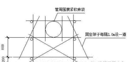 ①.由地泵引出的管線水平部分突出地面時(shí),需架空固定。每2M設(shè)一道固定點(diǎn),管周圍用軟麻袋或廢橡膠輪胎裹緊,防止摩擦損害輸送管,同時(shí)加強(qiáng)固定。固定如附圖