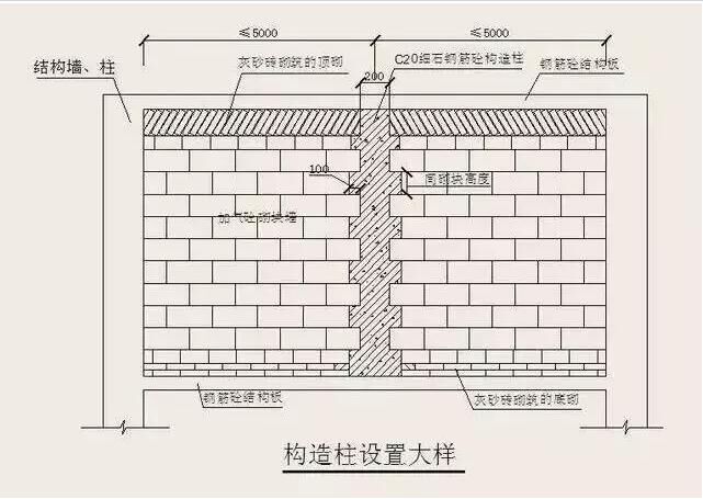 寬度大于2m的洞口的兩側(cè)、長(zhǎng)度超過(guò)2.5m的獨(dú)立墻體的端部;砌塊墻體的長(zhǎng)度超過(guò)5m時(shí),應(yīng)設(shè)鋼筋混凝土構(gòu)造柱。