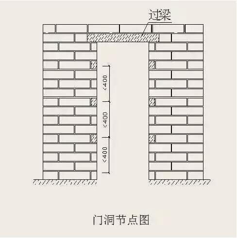 當(dāng)內(nèi)墻為砌體時(shí),應(yīng)沿門(mén)洞口兩側(cè),采取灰砂磚或水泥磚或C20混凝土預(yù)制塊,以每隔500~600mm間距替換加氣磚;門(mén)洞兩側(cè)自離地500起,采取灰砂磚或水泥磚或C20混凝土預(yù)制塊。