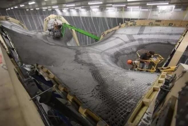 據(jù)了解,工程師們在打造過程中并沒有采用定制、一次性的木頭或泡沫支架,而是使用了他們自己設(shè)計的一種新技術(shù)。一張鋼索網(wǎng)被拉伸到想要的形狀,然后再在上面放置聚合織物形成一個靈活的模板。之后形狀可以通過算法控制,它能將力均勻地發(fā)布在各鋼索間并決定每個部分所需要的混凝土量。之后,鋼索網(wǎng)可以被拆掉、重復(fù)使用和重新調(diào)整。