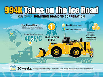 卡特彼勒利用冰路向北極圈附近礦山運送首臺994K裝載機