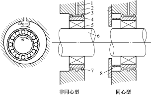 6.   7. 間隙油膜  8. 定心彈簧