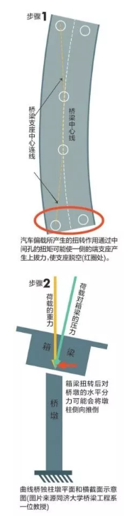 同濟大學(xué)橋梁工程系專家分析,曲線橋獨柱墩設(shè)計存在小概率隱患,國內(nèi)車況復(fù)雜或增大事故概率