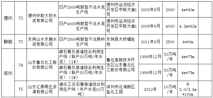 將截止2018年12月31日的山東省水泥熟料和平板玻璃生產線清單予以公示,共計75條水泥熟料生產線。