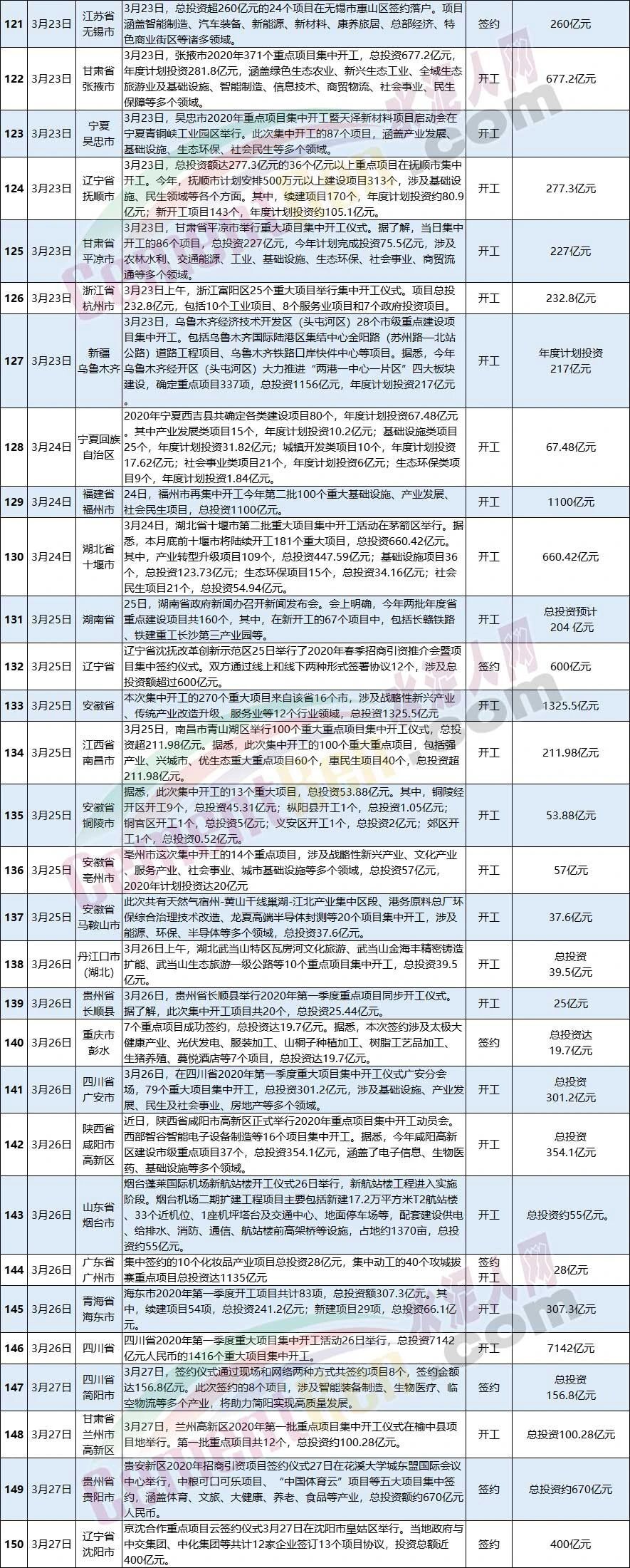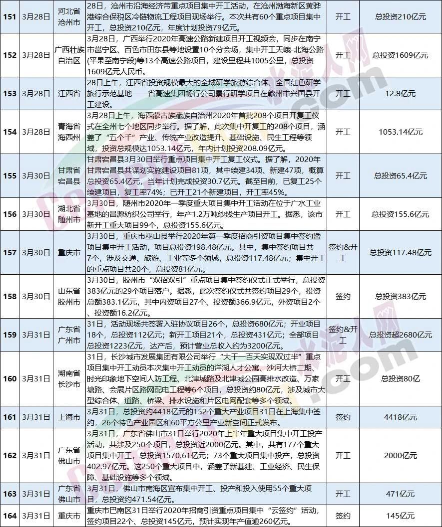 3月全國(guó)新開(kāi)工和簽約項(xiàng)目一覽表