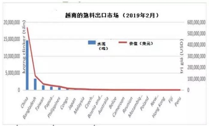 2019年,中國大陸是越南熟料水泥的主要市場占其市場份額的40.46%,達(dá)到631萬噸,價(jià)值248.19百萬美元。