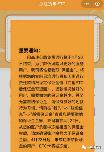 同日,浙江貨車ETC首頁發(fā)布通知,表示高速公路免費通行將于4月30日結束。
