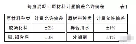 《混凝土質(zhì)量控制標準》(GB50164-2011)第6.3.2條每盤混凝土原材料計量的允許偏差應符合表1的規(guī)定,原材料計量偏差應每班檢查1次。