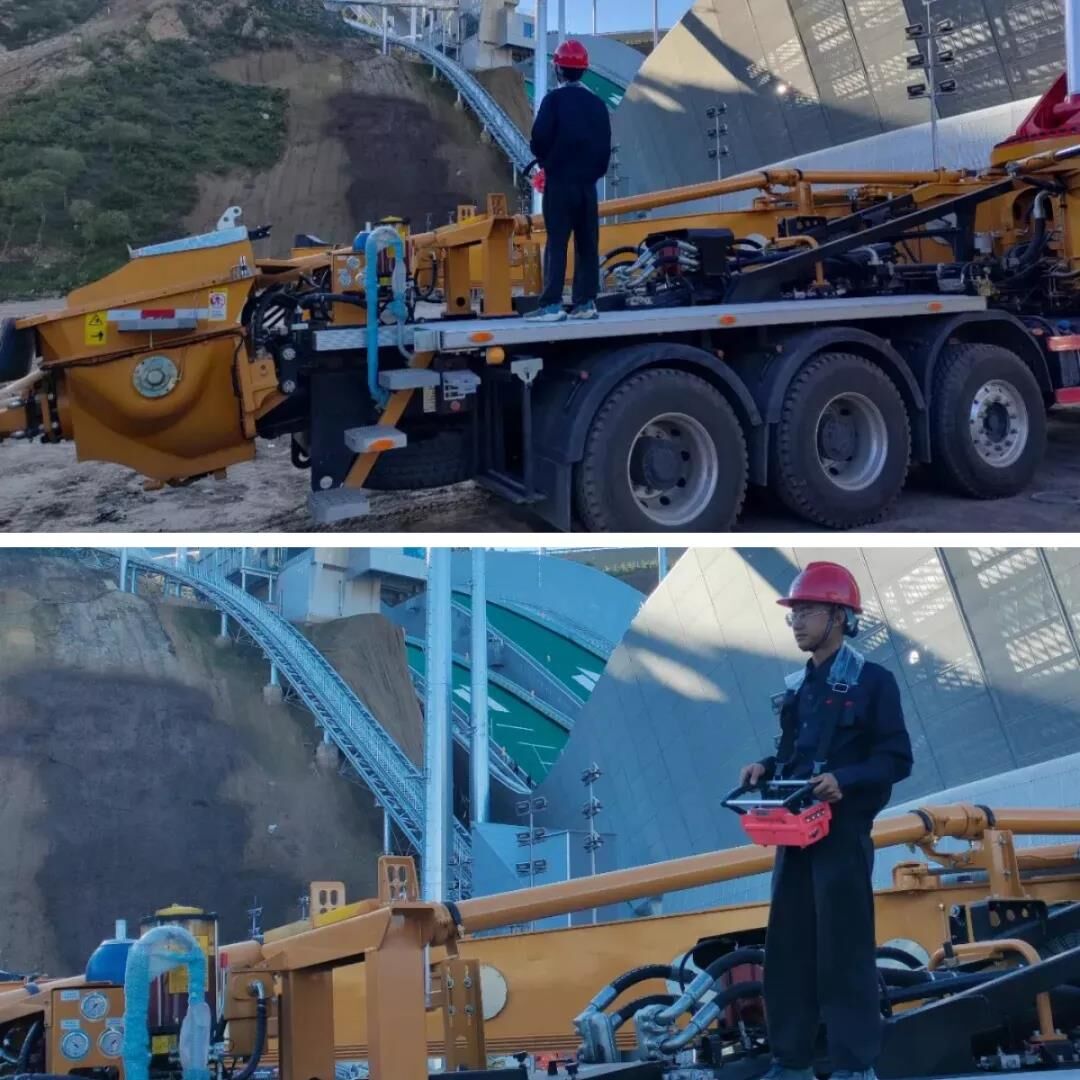 ▲三一泵車在淶源國家跳臺(tái)滑雪訓(xùn)練科研基地協(xié)助拍攝