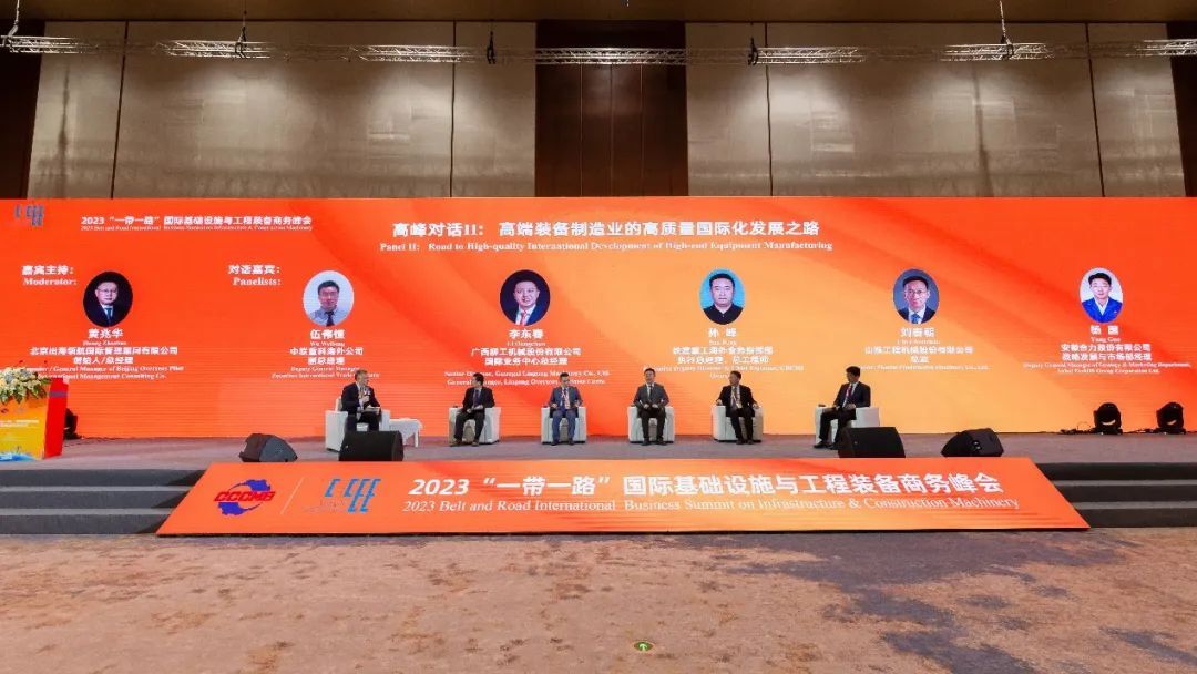 第二場高峰對話由北京出海領(lǐng)航國際管理顧問有限公司創(chuàng)始人、總經(jīng)理黃兆華主持,邀請中聯(lián)重科、廣西柳工、山推、鐵建重工、安徽合力公司高管,圍繞“高端裝備制造業(yè)的高質(zhì)量國際化發(fā)展之路”展開對話交流,對話嘉賓聚焦后疫情時代國際基礎(chǔ)設(shè)施發(fā)展的機(jī)遇,分享工程裝備制造業(yè)高質(zhì)量發(fā)展的經(jīng)驗和建議。