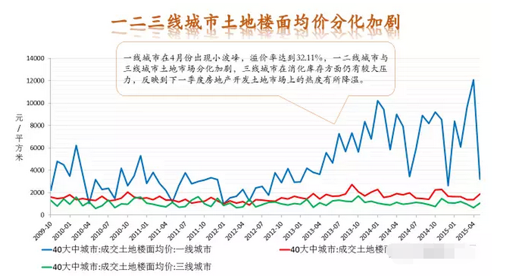 從不同級(jí)別的城市看,一線城市環(huán)比3月上漲幅度達(dá)到14.1%,漲幅最大,二線城市漲幅也達(dá)到7.3%。而三四線城市則并不樂觀,整體市場(chǎng)走勢(shì)出現(xiàn)了明顯的分化趨勢(shì)。
