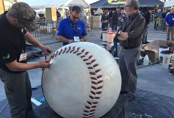 一個現(xiàn)場制作完成的“棒球”,除了顏色外,其實全部都是混凝土。