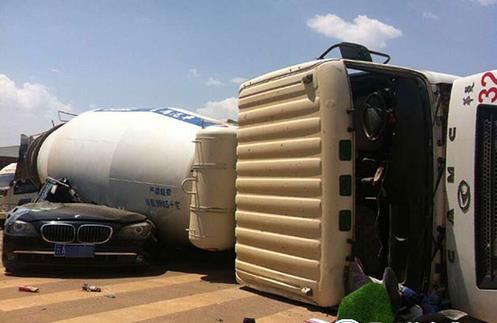 4月8日中午,昆明市經(jīng)開區(qū)景明北路與陽春大道路口發(fā)生一起交通事故:一輛混凝土攪拌車在行駛中與一輛寶馬7系轎車發(fā)生碰撞后失控側(cè)翻,寶馬車的整個(gè)左半邊被全部壓垮。經(jīng)現(xiàn)場交警和消防官兵全力救援,寶馬車駕駛員被救出,確定已不幸身亡。