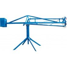 結(jié)構(gòu):、插銷(xiāo)、立架、構(gòu)成的底座是固定部分,其上通過(guò)回轉(zhuǎn)支承與上部回轉(zhuǎn)部分相連,上主梁架、平衡臂、平衡臂架拉桿、上橫桿組成后回轉(zhuǎn)部分。立管上有回轉(zhuǎn)卡篐接頭。通過(guò)人力拉動(dòng),可使整個(gè)回轉(zhuǎn)部分回轉(zhuǎn)360度。上梁主架前端連接有一個(gè)回轉(zhuǎn)支座與前橫桿、前拉桿組成前回轉(zhuǎn)部分,在人力拉動(dòng)下可繞回轉(zhuǎn)支座旋轉(zhuǎn)300度。由兩部分回轉(zhuǎn)架組成的合成運(yùn)動(dòng)就能覆蓋所有布料半徑范圍的布料點(diǎn)。
