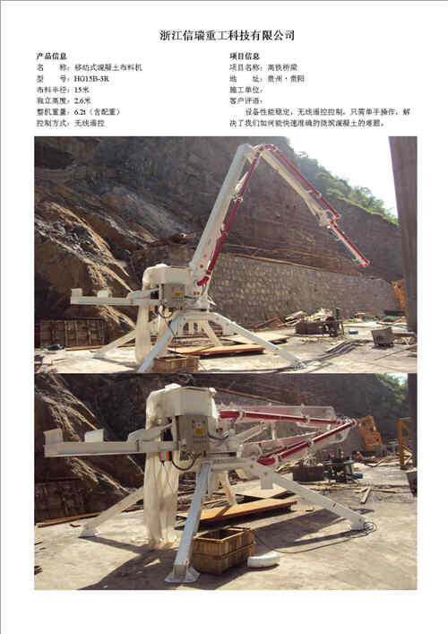 歸屬行業(yè):信瑞重工HG17B-3R移動式混凝土布料機