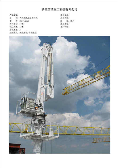 歸屬行業(yè):信瑞重工HG17A-3Z內(nèi)爬式混凝土布料機(jī)
