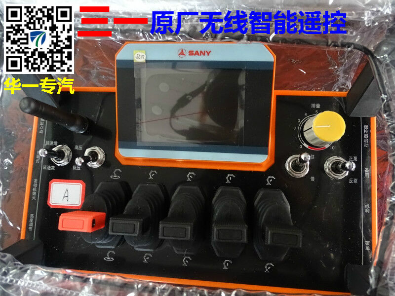華一專汽泵車采用三一牌遠(yuǎn)程遙控,高效智能指揮。