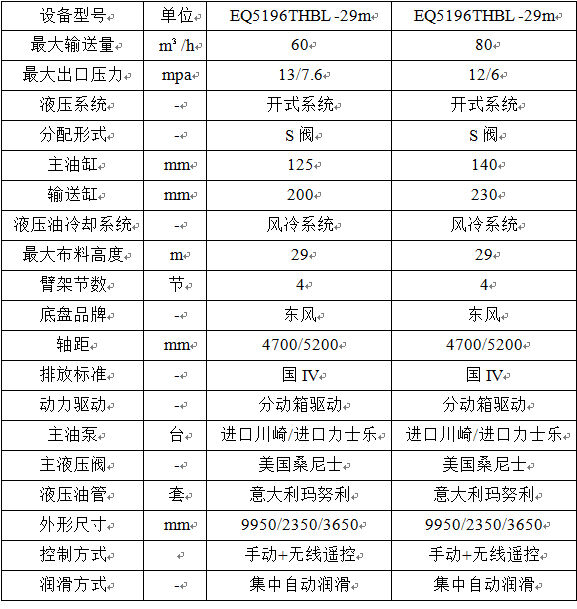 攪拌一體臂架泵車基本配置表
