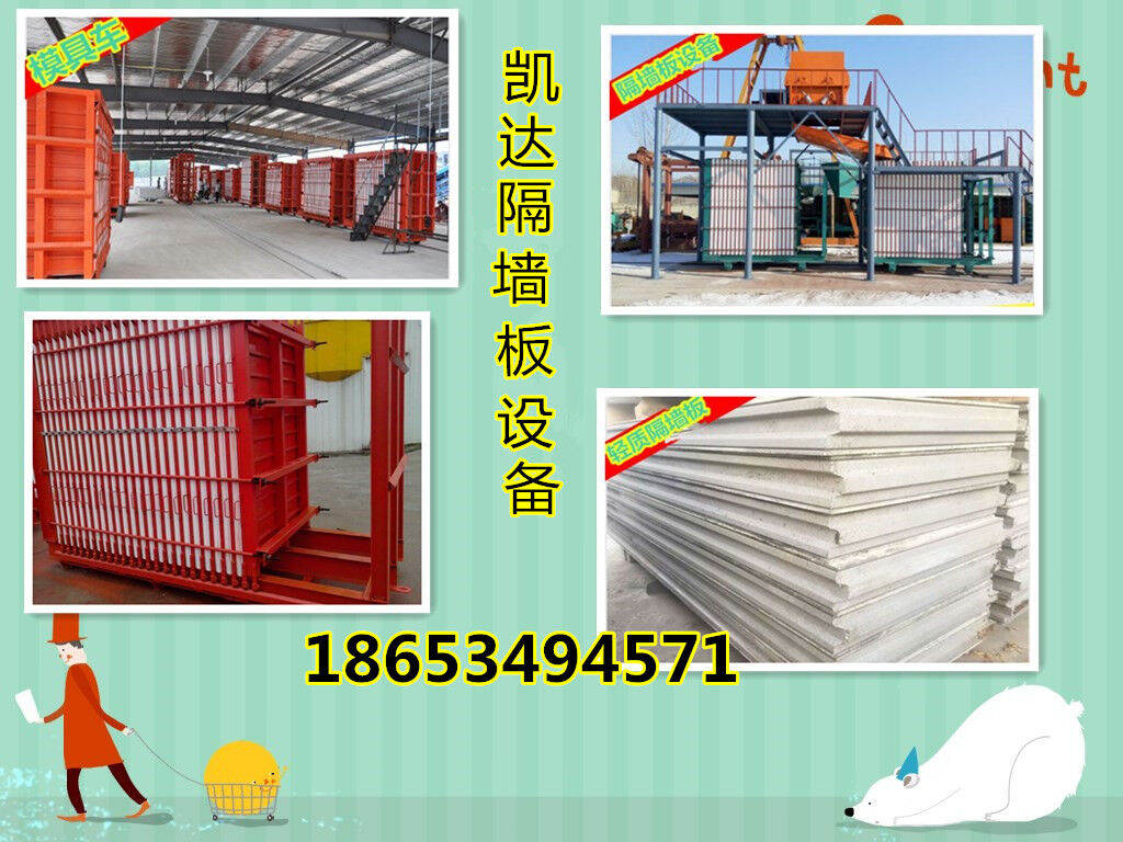 新型輕質(zhì)隔墻板設(shè)備由底盤總成、前立架、后立架、后壓板、拉桿、隔板、邊模、底模、轉(zhuǎn)換系統(tǒng)、電控系統(tǒng)組成,是目前市面上生產(chǎn)輕質(zhì)隔墻板先進(jìn)通用實(shí)惠的生產(chǎn)設(shè)備(市面上現(xiàn)有未經(jīng)本公司授權(quán)的仿制產(chǎn)品),輕質(zhì)隔墻板設(shè)備【防火】復(fù)合內(nèi)墻墻板機(jī)出廠價(jià)低目前本公司在國內(nèi)已扶持合作建廠30余家,國外建廠20余家,設(shè)備的主要特征是:操作靈活、投資少、見效快、產(chǎn)量高。