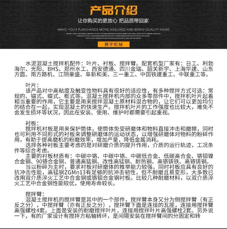 歸屬行業(yè):吉林原進(jìn)JS1000--JS2000混凝土攪拌機(jī)葉片 襯板 攪拌臂 軸頭密封