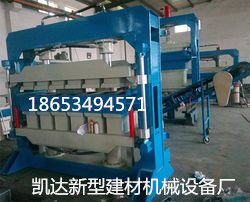 2:滾筒式加長攪拌機;攪拌機內(nèi)安裝有自動定量噴膠系統(tǒng)。滾筒式攪拌機可根據(jù)用戶配方,單組攪拌,多組份攪拌。3:皮帶傳送機;攪拌后的料通過皮帶傳送到壓板機料倉內(nèi)。如果采用提升機,有膠料的珍珠巖會粘接到提升機內(nèi)的滾筒上,時間過長會漲帶。蛟龍傳送會破壞珍珠巖顆粒。4:自動碼垛機;壓板機壓板后碼垛機自動把板材碼垛,進入烘干房或挪走自然養(yǎng)護。5:以上設(shè)備都是為壓板機服務(wù)的,所以所有輔助設(shè)備的用時,都小于壓板機的用量。這樣理論上的產(chǎn)量和實際產(chǎn)量相等。6:壓板機;20秒一次行程,一次性程壓制10塊板材,每分鐘壓制30塊板材。上下油缸內(nèi)安裝有強制限位器,這樣才能保證生產(chǎn)的