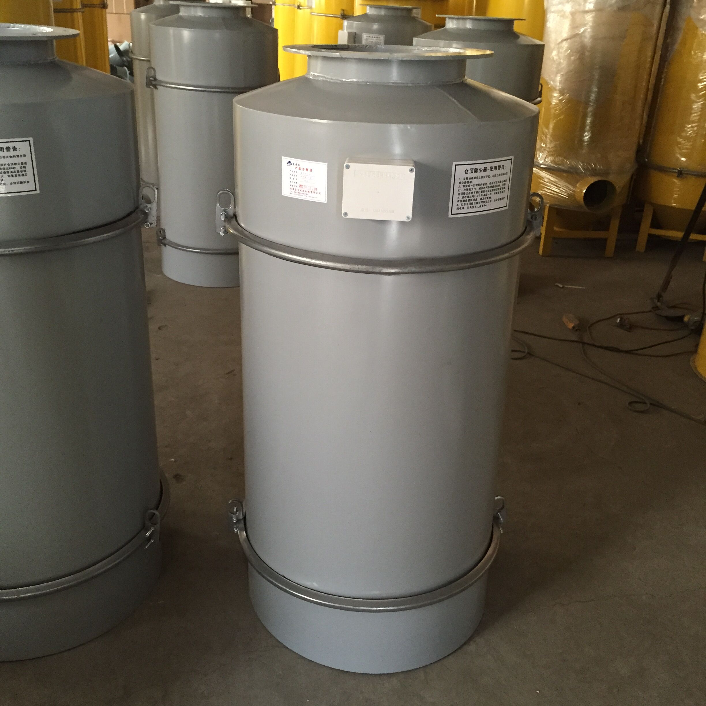32袋布袋除塵器有上箱和下箱組成,上箱包含32條除塵布袋、32只除塵骨架、4個電磁脈沖閥、一個 汽包、還有配套的引風機組成,一般配套1.5kw、2.2kw或者3.0kw的風機。上箱體的外形尺寸是長寬高1430*750*2500mm。
