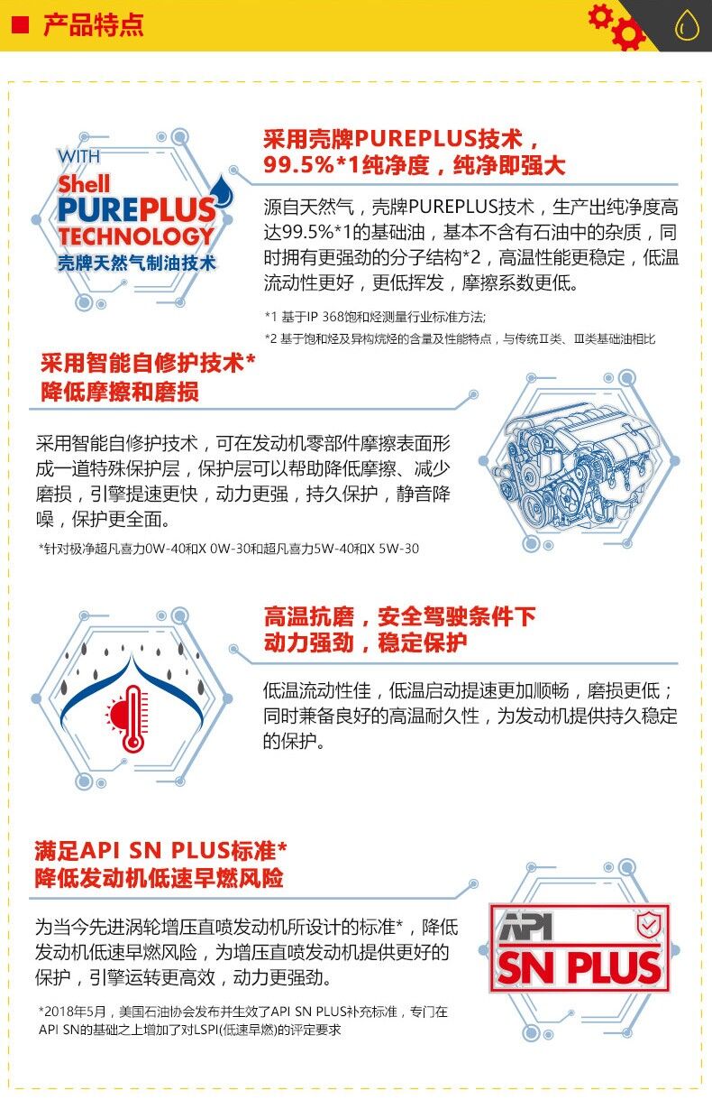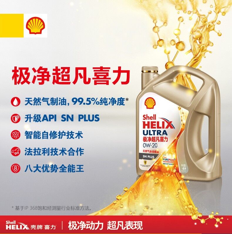 歸屬行業(yè):殼牌(Shell)新升級 金裝極凈超凡喜力天然氣全合成機油Helix Ultra 0W-40 SN PLUS級 6L組合裝