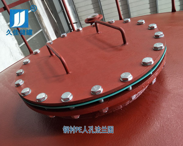 結(jié)構(gòu):鋼襯塑產(chǎn)品一般由桶身、平底、封頂、人孔、進(jìn)料口法蘭、出料口法蘭和液位孔口法蘭組成,臥室鋼襯塑儲罐通常還有標(biāo)準(zhǔn)鋼質(zhì)支座,鋼襯塑產(chǎn)品一般根據(jù)用戶要求設(shè)計制造。