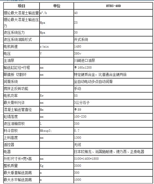 理論最大混凝土輸送量:40m3/h