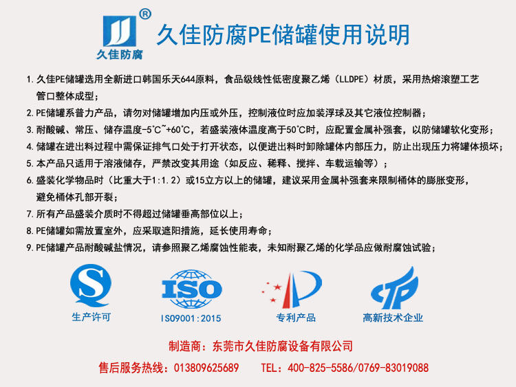 久佳牌PE塑料儲罐說明: