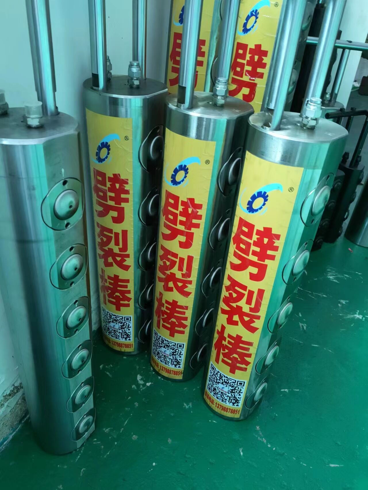 液壓柱塞式棒原理及組成液壓柱塞式棒主要由液壓泵站和劈裂器(棒)兩部分組成。120-150MP超高壓油泵站輸出的高壓油驅(qū)動油缸產(chǎn)生巨大推動力(1300-1500噸),并推動劈裂棒上的活動活塞向外運動,從而使活塞產(chǎn)生的作用力作用于被體孔壁,巖石在巨大的作用力下按預(yù)定方向裂開。