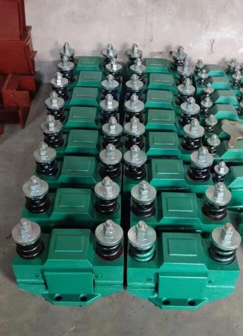 ⑼ 斜溜槽(見圖12):對于厚度小于3-3.5毫米的料槽,若在中心線靠下一點(diǎn)的部位安裝,便會在料槽下端產(chǎn)生強(qiáng)烈的振動。用于圓筒形料槽時(shí),可先把振動器裝在平板上,然后用U型螺栓固定在管子上。安裝單臺振動器時(shí),一般應(yīng)裝在溜槽下端40%的位置上。安裝多臺時(shí),應(yīng)***同步運(yùn)行,*下部的一臺應(yīng)裝在距離溜槽端部45-60厘米處。