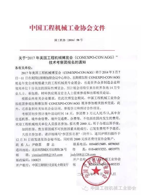 關(guān)于2017年美國(guó)工程機(jī)械博覽會(huì)技術(shù)考察團(tuán)報(bào)名的通知
