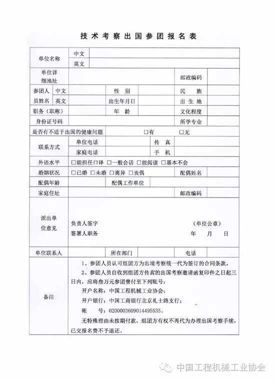 考察團(tuán)初步預(yù)計(jì)境外活動(dòng)時(shí)間14天,參團(tuán)費(fèi)3萬(wàn)元人民幣/,其中含往返機(jī)票、境外食宿費(fèi)、境外交通費(fèi)、雜費(fèi)等,不包括在國(guó)內(nèi)發(fā)生的費(fèi)用。歡迎工程機(jī)械相關(guān)單位人員報(bào)名參加,報(bào)名費(fèi)2000元,用于辦理出國(guó)手續(xù)。