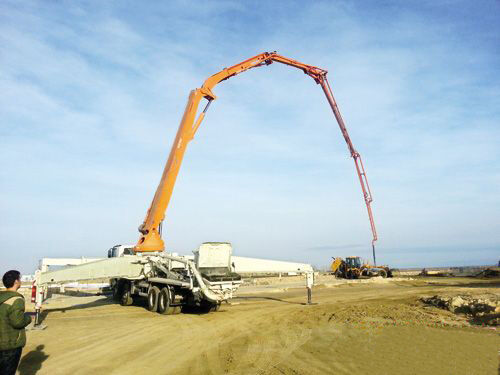 中聯(lián)重科52米臂架泵車于2013年12月入駐阿塞拜疆,當?shù)貧夂蚴趾?,作為首臺入駐阿塞拜疆的中聯(lián)泵車,本次交付具有標志性意義。中聯(lián)重科52米臂架泵車擁有智能仿生6RZ專利、高效大排量、智能溫控節(jié)能等技術,通過泵送系統(tǒng)、臂架長度和底盤的科學匹配,最大泵送方量達200 m3/h,適合本次大方量工程要求。在國內(nèi)外各種復雜的工地條件上,其多臂復合運動控制、全行程控制、單邊支腿同步操作等技術大大提高了泵送效率,深受客戶青睞。